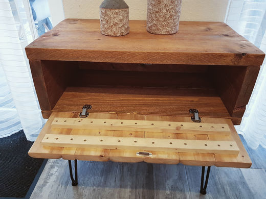DIE KOMMODE ÜBERZEUGT DURCH IHREN GEMÜTLICHEN UND RUSTIKALEN CHARAKTER. DURCH DIE KOMBINATION VON HOLZ UND VINTAGEELEMENTEN WIE SCHARNIEREN ODER SCHMIEDENÄGELN IST SIE EINFACH ZEITLOS UND FÜGT SICH IN IHRE 4 WÄNDE NAHTLOS EIN. DER RUSTIKALE LOOK DES FICHTENHOLZES VERZEIHT VIEL UND LÄSST SIE ENTSPANNTER WOHNEN. DER KORPUS BESTEHT AUS FICHTENBRETTER MIT 4CM STÄRKE. DIE KLAPPE AUS CA. 10CM BREITE FICHTENBRETTERN. DIE BRETTER SIND NATURBELASSEN UND WEISEN INDIVIDUELLE MASERUNGEN UND FURCHEN AUF. ALLE BRETTER WURDEN IN MEHREREN ARBEITSGÄNGEN MIT PIGMENTIERTEM HOLZÖL GEÖLT UND DIE ABLAGE MIT EINEM FINISHÖL VEREDELT.